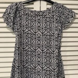 AB Studios, Black With White Design Flowy Top, Size Small. Top Has a Pendant Included and Attached That Can Be Worn Or Removed.