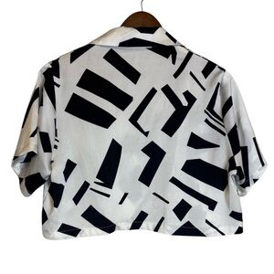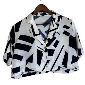 Black and White, Retro Style , Geometric Pattern, Cropped Button Down, Blouse