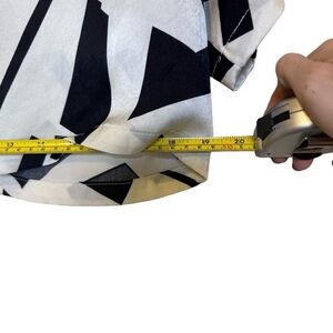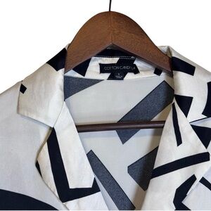 Stylish button-down shirt with abstract black and white pattern. Perfect for a modern look.