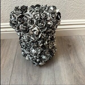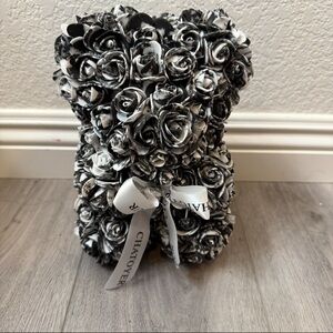Elegant teddy bear made of black and white roses. Perfect for gifting or decoration.