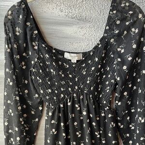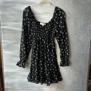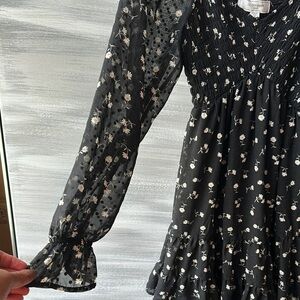 This stylish sundress features a ruched design with a scoop neckline and bishop sleeves, perfect for casual outings or a night out. The black and white color scheme adds a timeless touch, while the long sleeves provide a chic and comfortable fit. Its elegant silhouette makes it a versatile addition to any wardrobe.