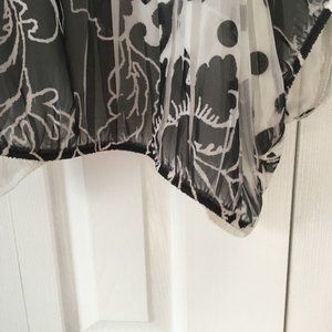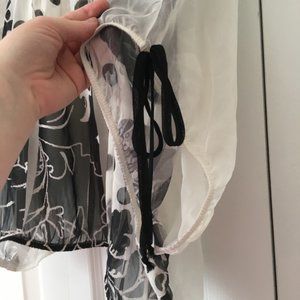 white, sheer; light; flowy; lightweight; see; through; flower; flowers; roses; tie; sleeves; bows; dolman