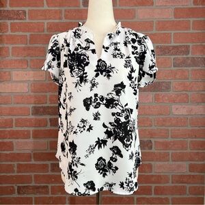 Beautiful black and white short sleeve blouse. Perfect for the office. Looks great with a black blazer or cardigan sweater. Only worn a couple of times. In perfect condition!
