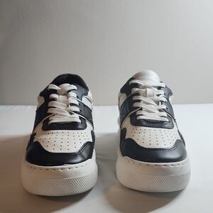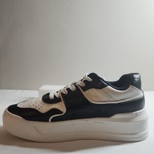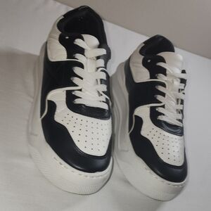 Stylish black and white sneakers with a modern design. Perfect for casual wear.