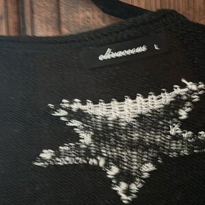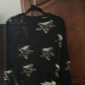 Stay stylish and cozy with this black and white star pattern sweater. Perfect for any casual outing.