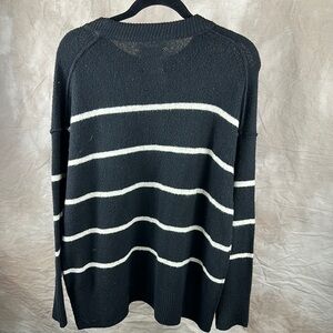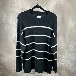 Stay stylish and comfortable with this black and white striped men's sweater. Perfect for any casual occasion.