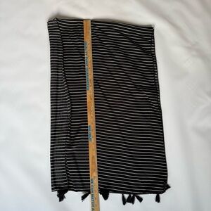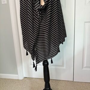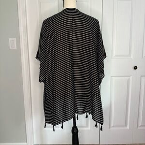Stylish black and white striped kimono. Features tassel details for added flair. No tags. Purchased at a boutique Light weight soft fabric. One size fits most