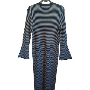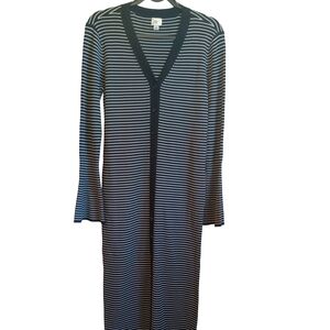 Black and White Striped Cardigan Dress with Long Bell Sleeves