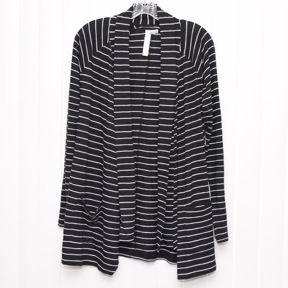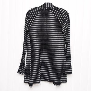 Black and white striped open shawl collar cardigan