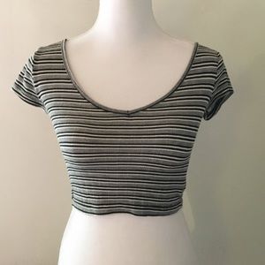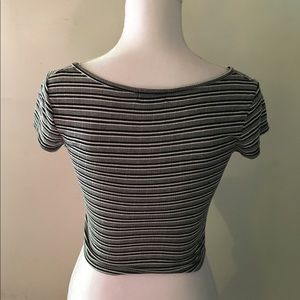 Slim fitted Crop Top with black and white horizontal stripes. Brand New with No Flaws.