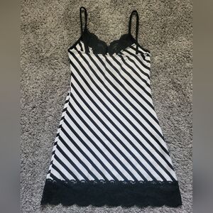 Stylish black and white striped cami with lace trim. Perfect top for this spring and summer weather. Beautiful tank! Excellent condition.