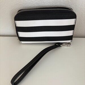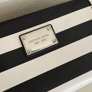 Black and White Striped Michael Kors Wallet with Wristlet