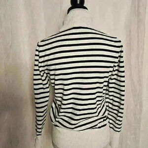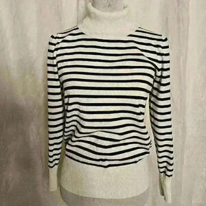 Classic black and white striped turtleneck sweater from Spense. A versatile and stylish piece.
