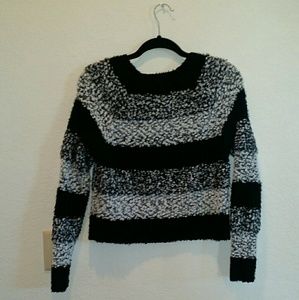 Very soft, like new. Worn only once. Runs small. Fits like a medium. I got it from Charlotte Russe.