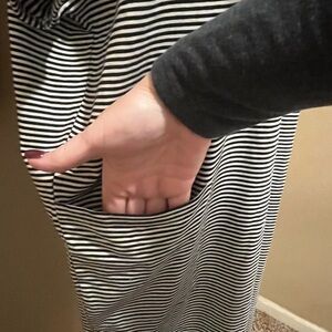 Black and White Striped V-Neck Short Dolman Sleeve Knit Lounge Dress, size XS