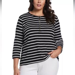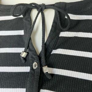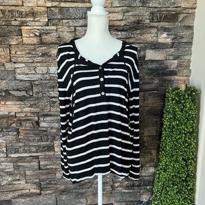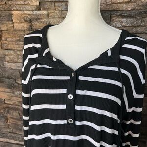 Stylish black and white striped top for women. Perfect for casual outings or a chic office look.