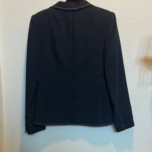 This blazer showcases a refined tailored design with a notched lapel, providing a sophisticated and polished appearance. The black and white color combination enhances its elegance, making it ideal for business settings.