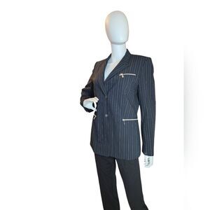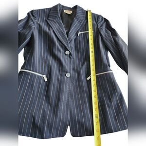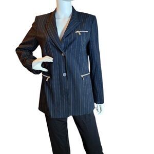 Stylish pinstripe blazer with. Features zippered pockets, used once