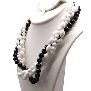 Black and White Torsade Necklace, 4 Strand Plastic Beads, Unique Coordinating Vintage