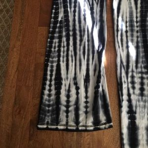 Comfortable black and white tye dye justice yoga pants with wide legs at the bottom. Wide waistband. Black edging on the bottom. 95% cotton/5% spandex. Great condition.