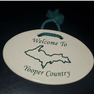 Stylish mug featuring the Upper Peninsula design. Black with white speckles and accents.