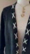 Elegant black sweater featuring white cross stitch detailing. Perfect for adding a stylish touch to any outfit.