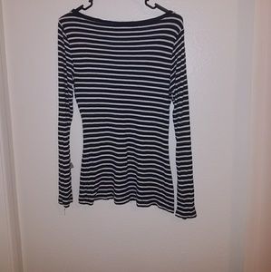 Long sleeved shirt, black and white striped. Nothing complicated of too loud. Very casual and super easy to dress up with some statement accessories.