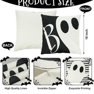 4Pcs Halloween Pillow Covers 18 X 18 Inch Spooky Ghost Pillow Cover Black Stripe Cushion Case Halloween Decorative Pillow Cases For Home Sofa Couch Living Room Bedroom Outdoor Indoor Decor
