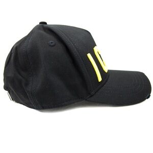 Stylish black cap featuring bold yellow 'ICON' embroidery. Perfect for casual wear.
