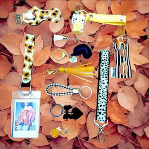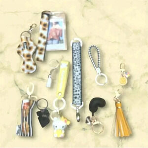 The large black and white keychain is from Thirty One & a Hello Kitty yellow keychain. The others are unbranded. This post is for a bundle of 11 keychains.