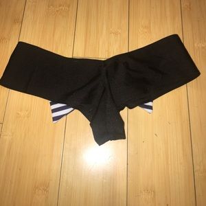 Black scrunch bikini bottoms with white and blue striped bow tie on the back! Custom made!!!