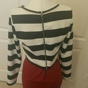 Black and cream crop top from Arden B. Long sleeve with zipper on the back. Stretchy