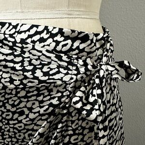 Cute lightweight skirt with faux wrap front with functional adjustable tie at waist.