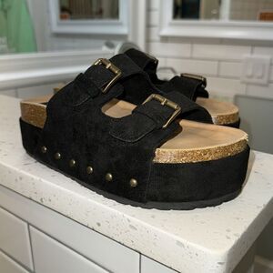 Black and gold Double Buckle Footbed- very good condition! Size 8