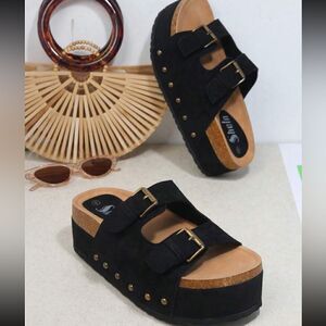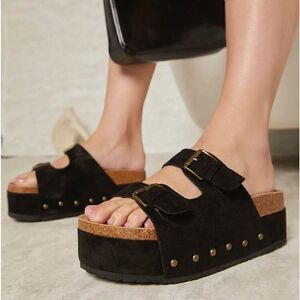 Black and gold Double Buckle Footbed! Size 8-