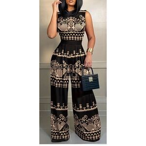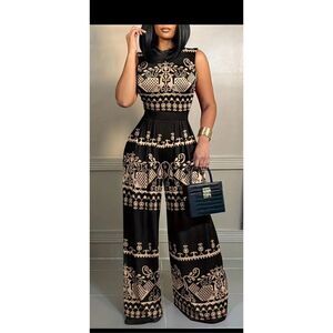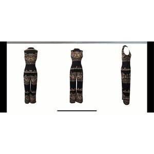 š„Black and gold - One piece romper/ jumpsuit, zips up the back wide leg, Boho feel , sleeveless. Fits 14-16