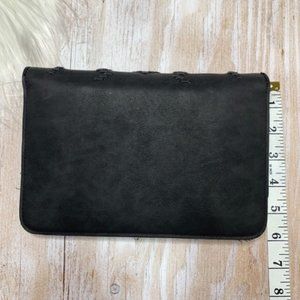Black and gold crossbody purse with card holder perfect for a night out. Chain is detachable.