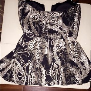 Black and gold deep cut v shirt stretchy worn once can be dressed up black skirt or down with jeans in great condition