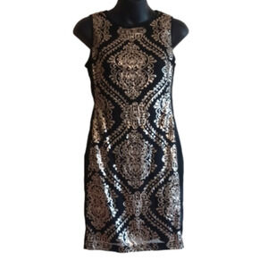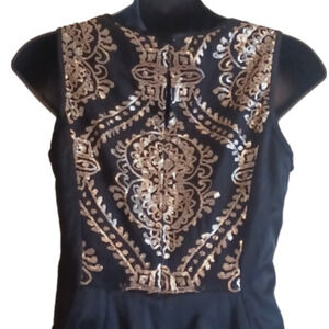 Black and gold( sequins) on this fancy little dress by Donna Ricco.size 2p