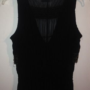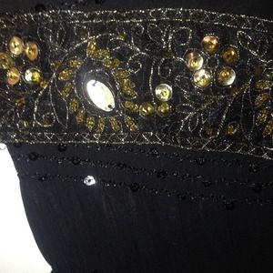 Black with gold sequins. Sheer back see through back. Front of shirt has liner. Size large. Worn once. Great top for New Year's eve
