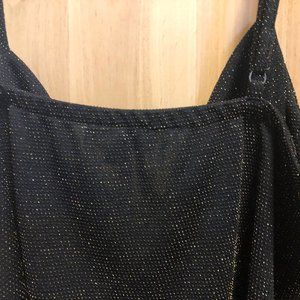 Subtle gold sparkles on a black spaghetti strap camisole. Stretchy fabric poyester, modal, spandex.Adjustable straps.