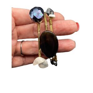 The first has two oval faceted stones with two sets of Clear w/black crystals on opposite sides