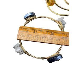 Black and gold tone wire-wrapped bangles adorned with black and white stones set