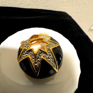Black and gold with rhinestone accents starburst Earrings vintage 80s clip ons