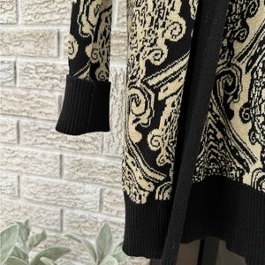 Warm knit, thigh length. Excellent condition. Black and gold with subtle gold shimmer cardigan. Fits size 4-6.