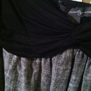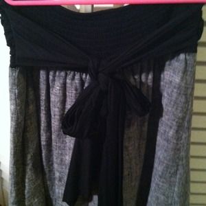 Super cute black and gray dress. The gray part is a light denim looking fabric. Tie in the back allows you to tighten it around the bust if needed. Dress it up with heels or down with flats. Only worn once! In perfect condition!