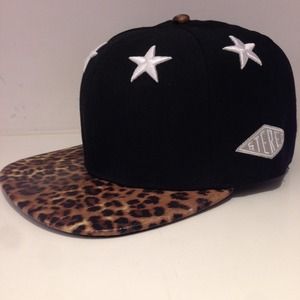 Brand new hip hop black and leopard "5 star" snapback hat.