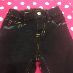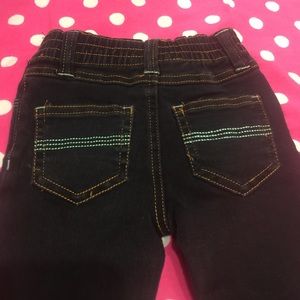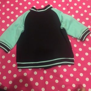 Black and mint green letterman jacket with front center snap buttons for closure and front pockets. Black denim jeans with rust colored stitching and mint green embroidered front swing pockets and back pockets. Comes from a non-smoking and non-pet home.