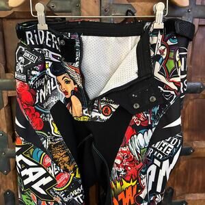 Black and multi-coloured O'Neal Mayhem Crank Mx motocross dirt bike pants . bike