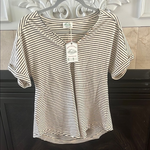 Black and off white striped top . New without tags . A little oversized and can fit a medium
